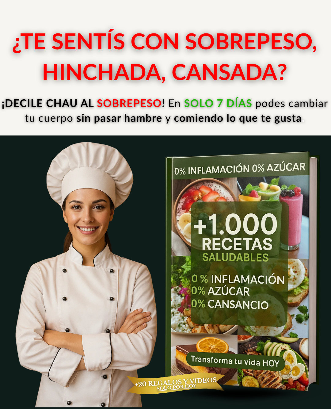 Recibirás un libro digital (ebook) en formato PDF de alta calidad. Además de las recetas, incluye planes de comidas semanales, listas de compras y guías de inicio rápido para que comiences a transformar tu alimentación desde el primer día.
